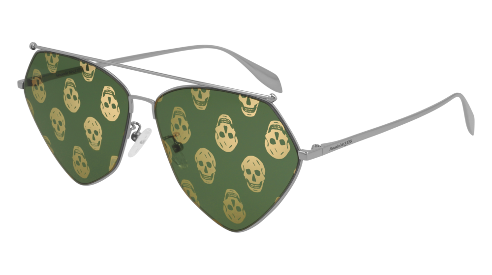 Discover the elegance of the Alexander McQueen AM0317S sunglasses, meticulously crafted in Italy. This stunning accessory features a sleek shiny black frame complemented by a luxurious leather element on the bridge, enhancing its sophisticated appeal. The unique geometric design adds a contemporary flair to your ensemble, making it an eye-catching statement piece. Equipped with grey lenses that offer 100% UV protection, these unisex sunglasses seamlessly blend fashion and functionality. Elevate your style effortlessly with this must-have accessory!