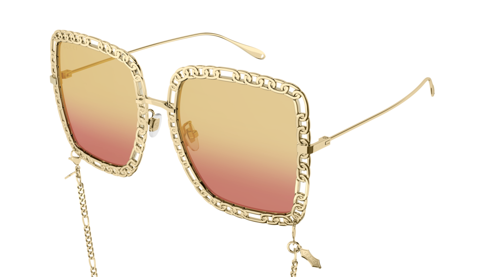 Elevate your style with the stunning Gucci GG1033S sunglasses. Featuring a chic square frame crafted from luxurious gold metal, these shades radiate sophistication and elegance. The vibrant blue lenses introduce a playful flair to their refined design. With a comfortable fit and the subtle Gucci logo adorning the temples, these sunglasses are ideal for fashion-forward women who value timeless beauty. Make an unforgettable statement wherever you go with these iconic accessories from one of the world’s most prestigious fashion houses. You deserve this!
