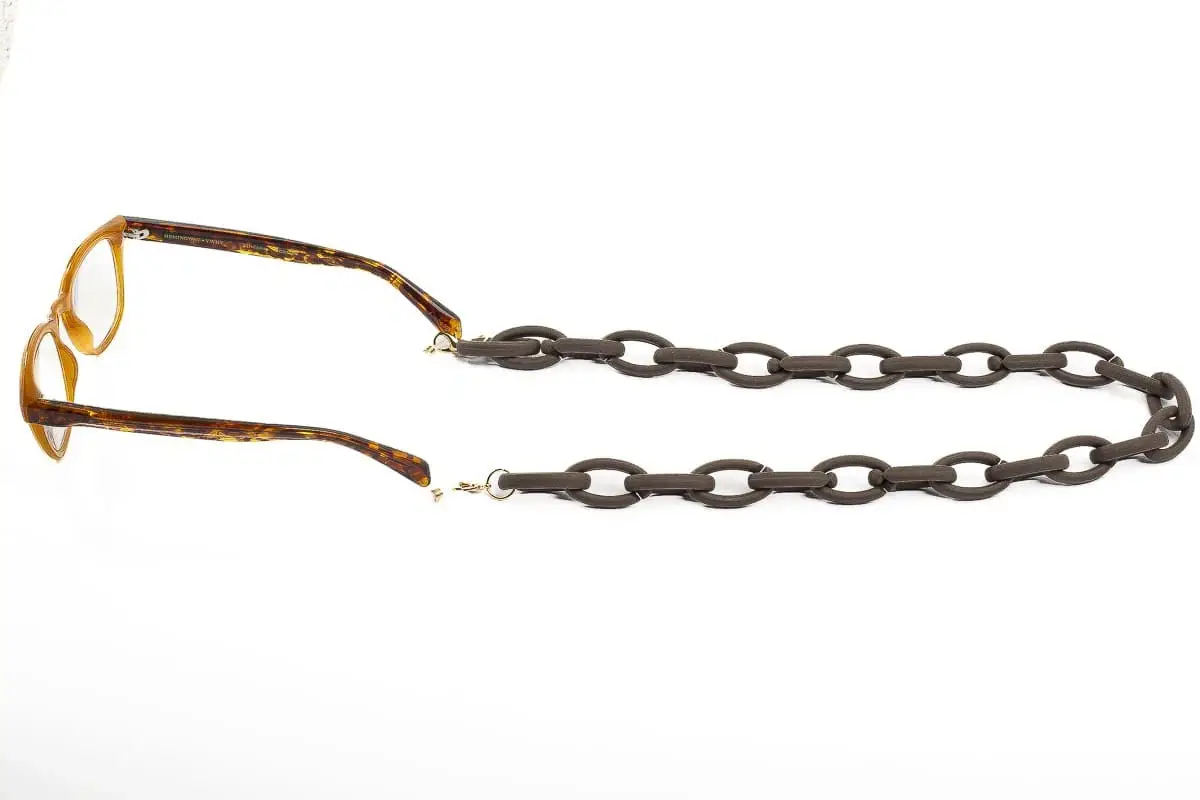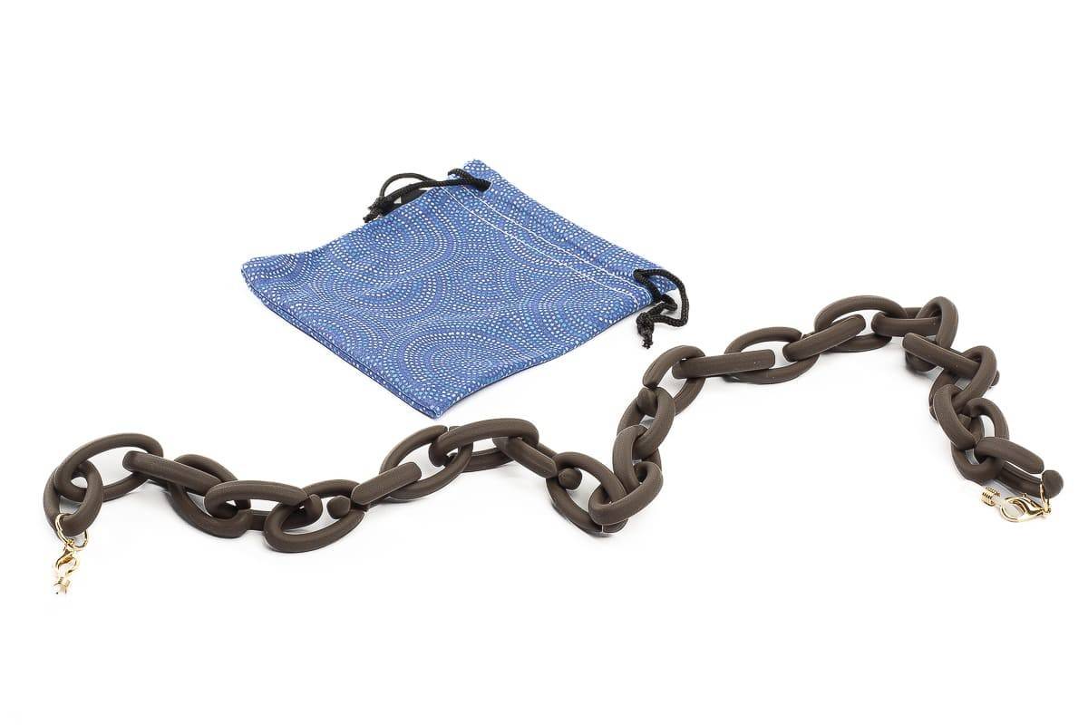 Soft-touch AIRPORT Brown eyeglass chain. A very fashionable chain for Airport acetate glasses, equipped with a special microfiber case. Perfect for those who want to wear glasses in style.